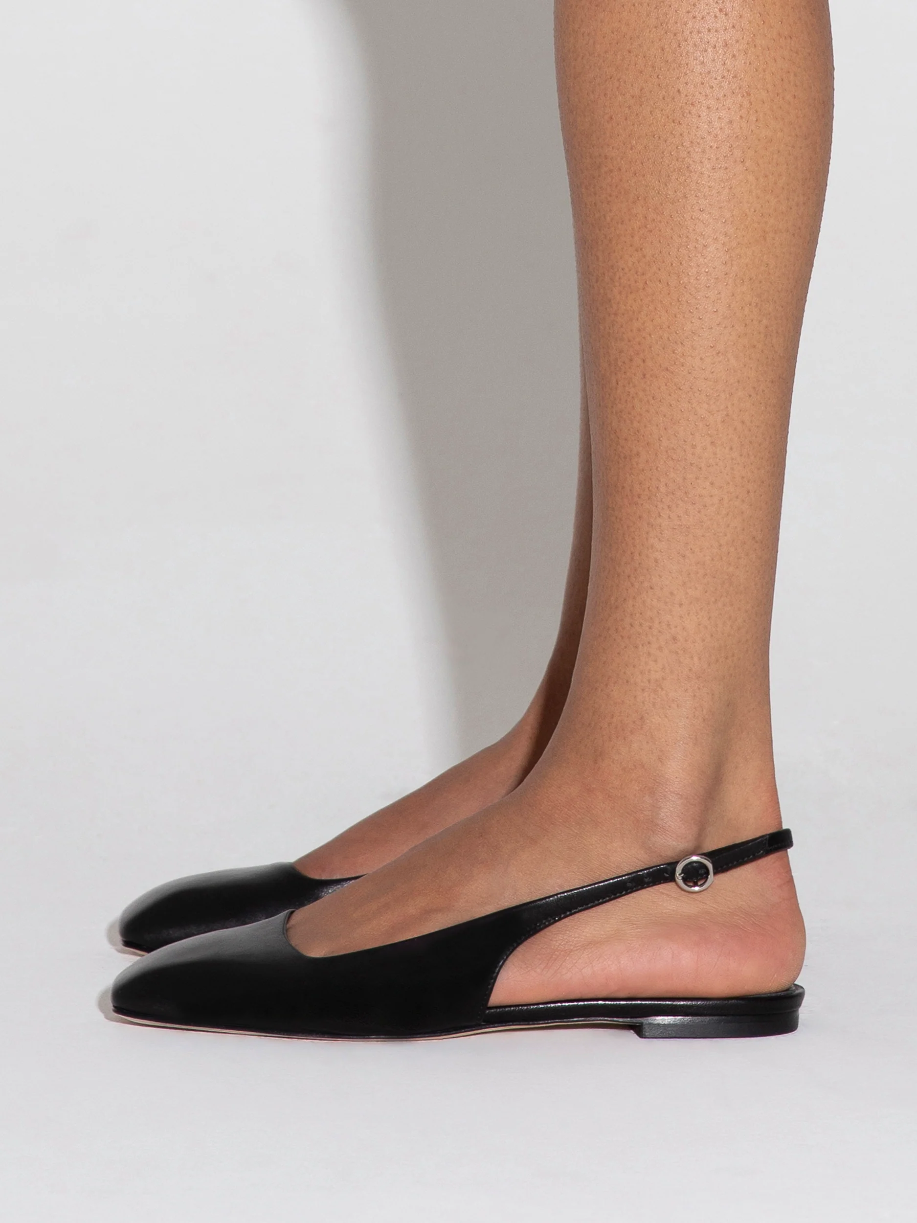 - Adjustable slingback strap with buckle closure