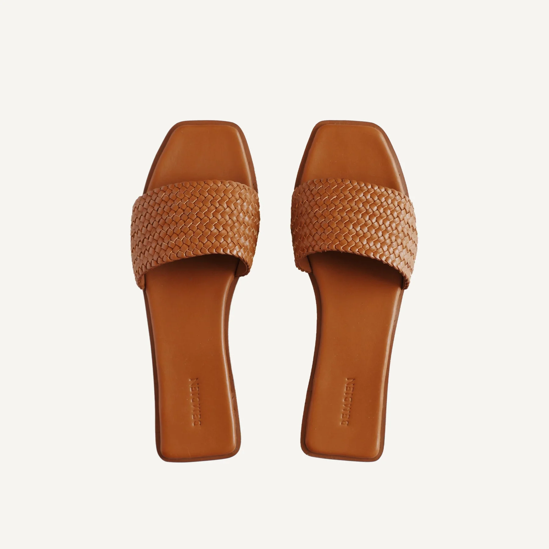 A classic summer slide (and our most comfortable). The wide, handwoven leather strap is smooth and padded on the underside. Features a low stacked heel to give you a little extra height and a padded sole for all-day comfort.