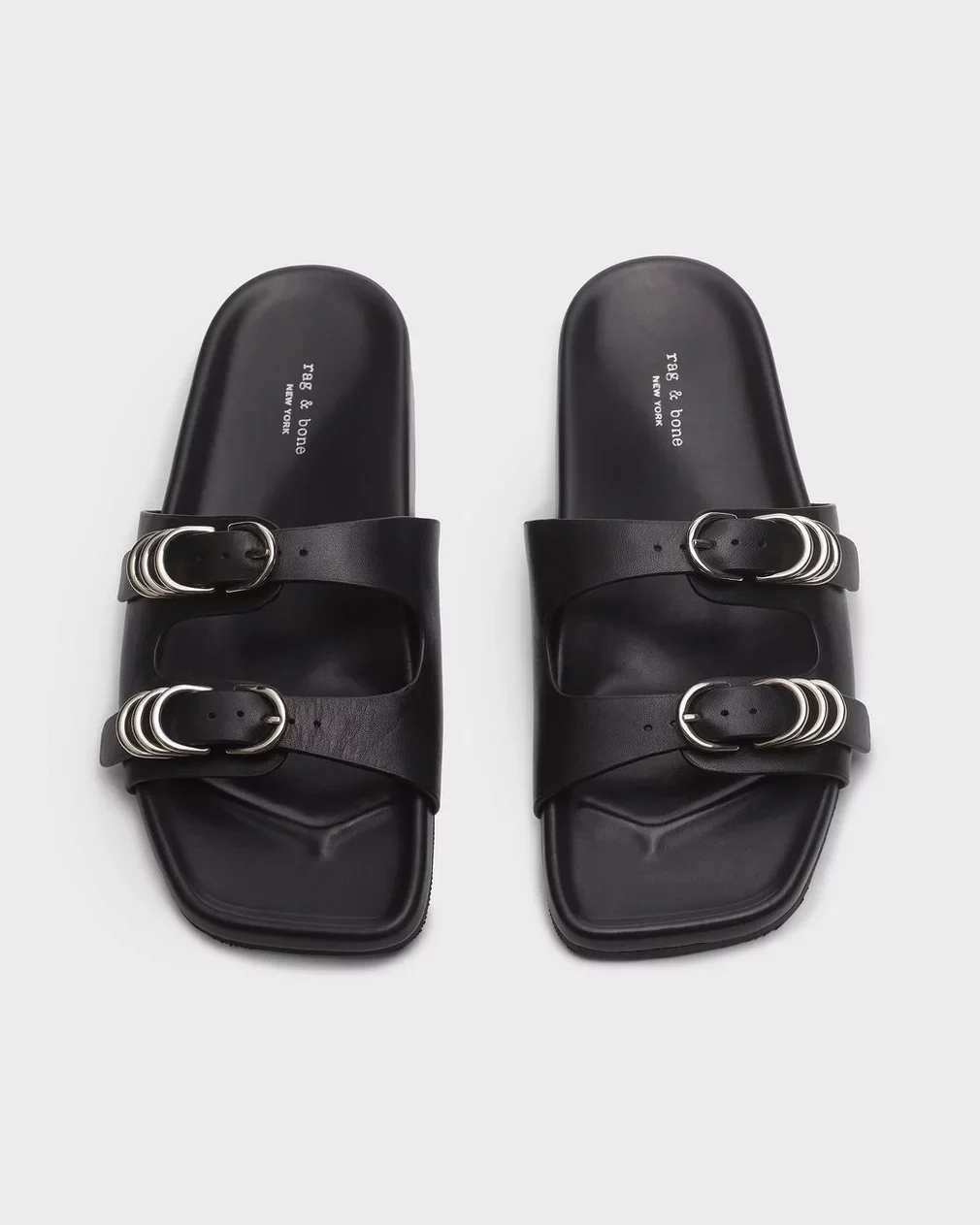 Sandals with substance. Crafted entirely from soft leather, these square-toe slides feature double straps accented by our signature D-ring trio. Their molded ergonomic footbeds are customized with OrthoLite© foam for optimal stability, support, and comfort, ensuring they feel just as great after all-day walks around the city as they do during neighborhood strolls.